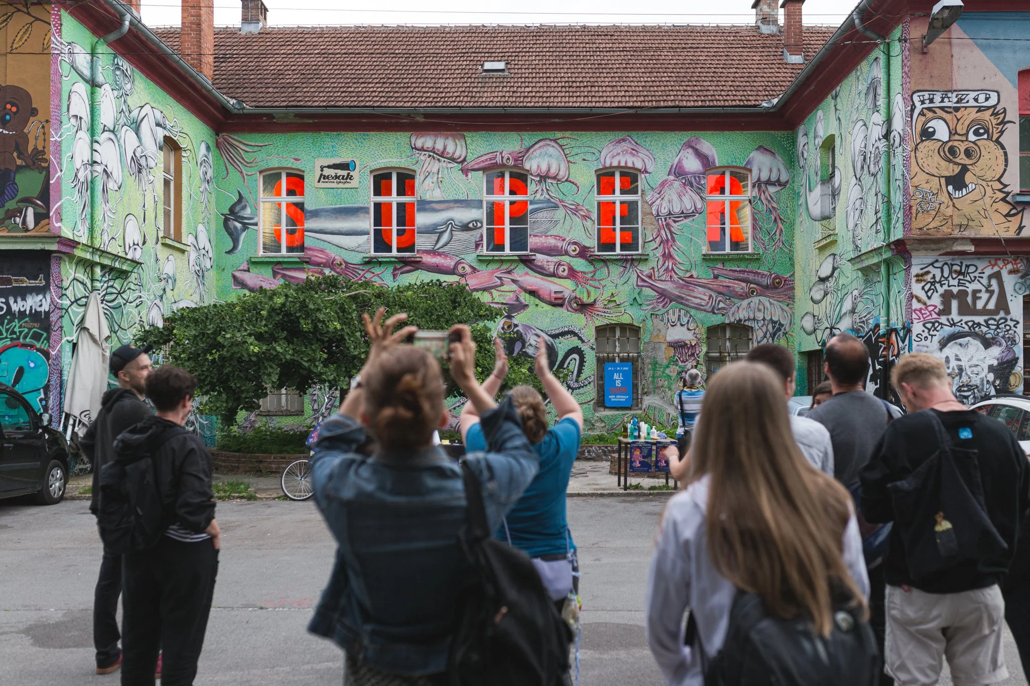 All Is Super giant letter installation was on display in the Night Gallery Pesak in Metelkova, Ljubljana in the Summer of 2020. The opening of the exhibition also opened the 2020 Ljubljana Street Art Festival.